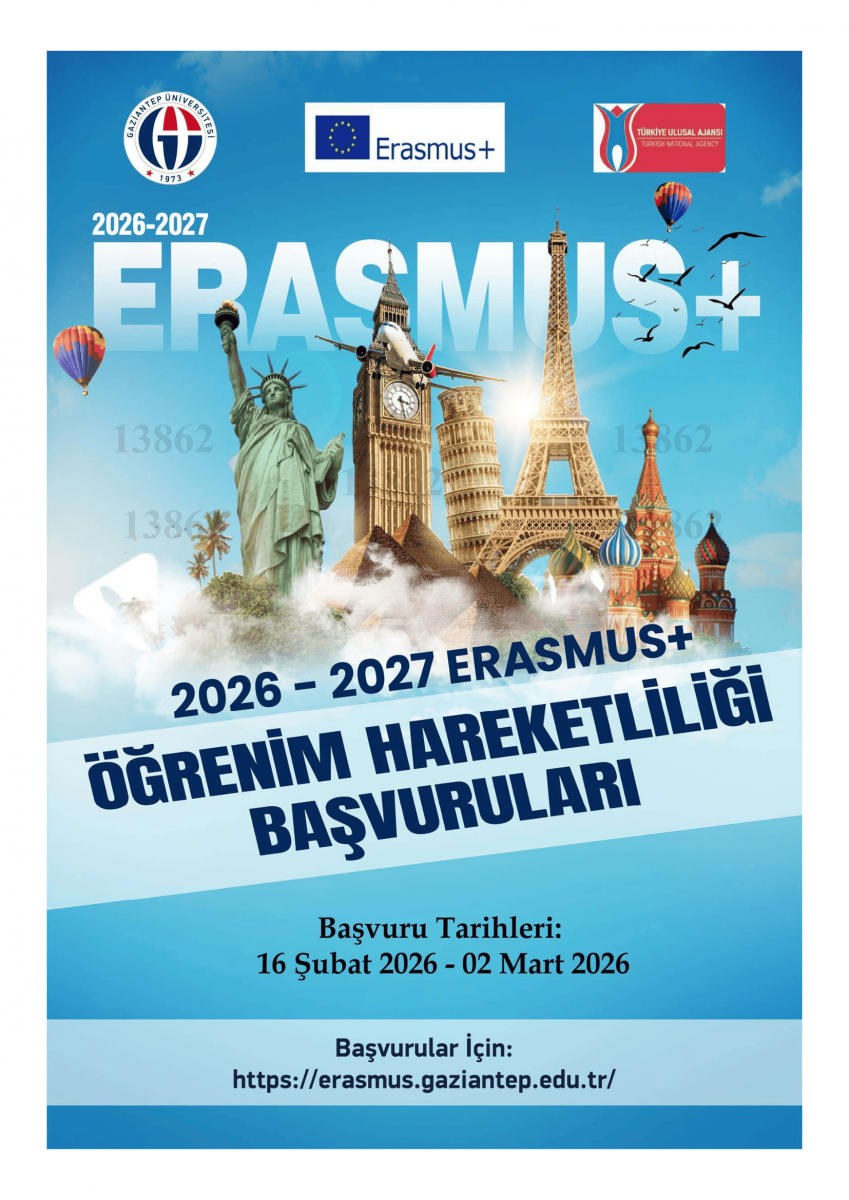 2026-2027 Erasmus+ Öğrenim Hareketliliği başvuruları için https://erasmus.gantep.edu.tr/ adresini ziyaret edebilirsiniz.